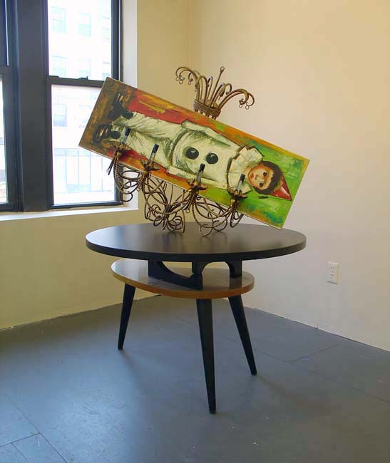 Frank Schroder, Clown without nose, 2007, Table, chandelier, painting (oil on canvas), Variable dimensions
