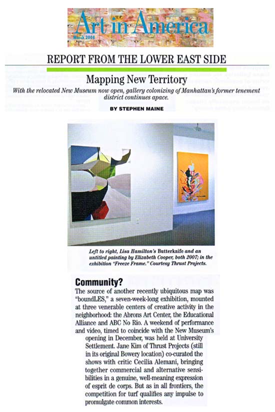 Stephen Maine, "Report fom the Lower East Side: Mapping New Territory," Art in America, February, 2008.